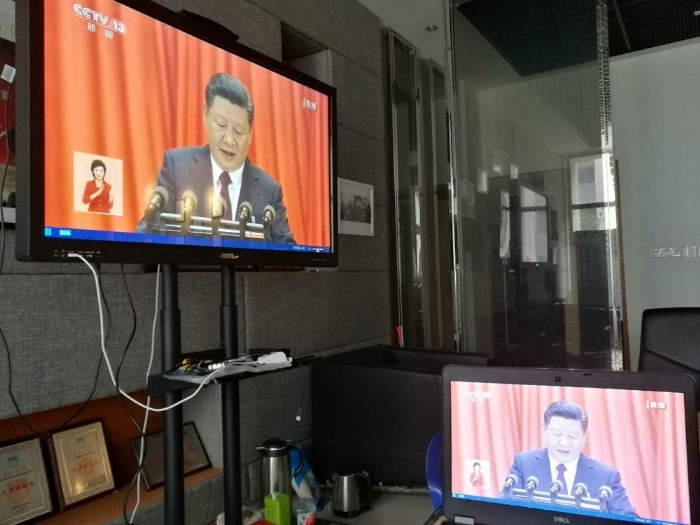 艺术公司组织师生观看中国共产党第十九次全国代表大会开幕会