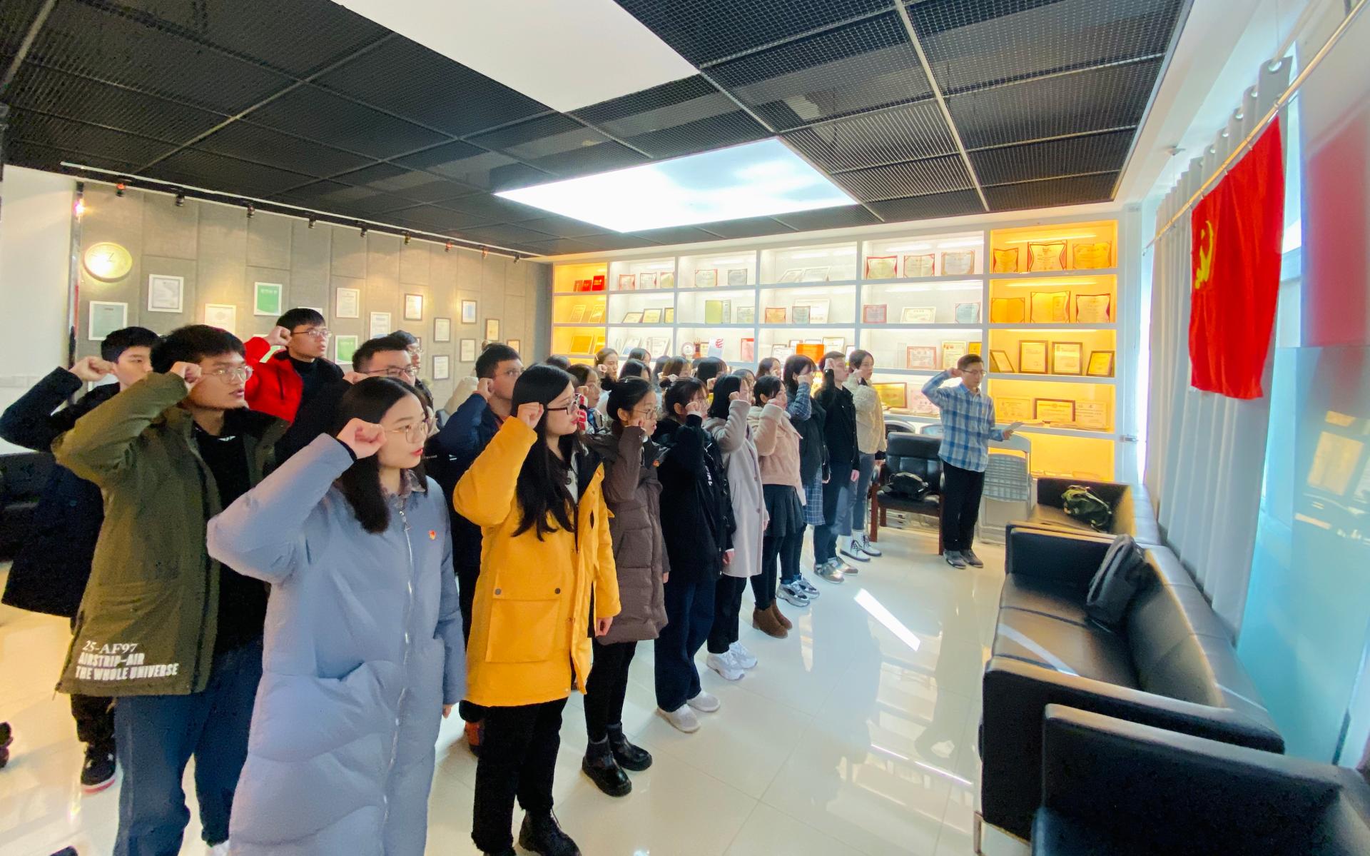 12月27日,在文科楼123会议室,公司党委举行2019年下半年发展的新党员入党宣誓仪式。公司党委书记陈建华、副书记郑万秋、学办老师、员工党支部书记和27名新党员参加。入党宣誓仪式由吴一凡老师主持。