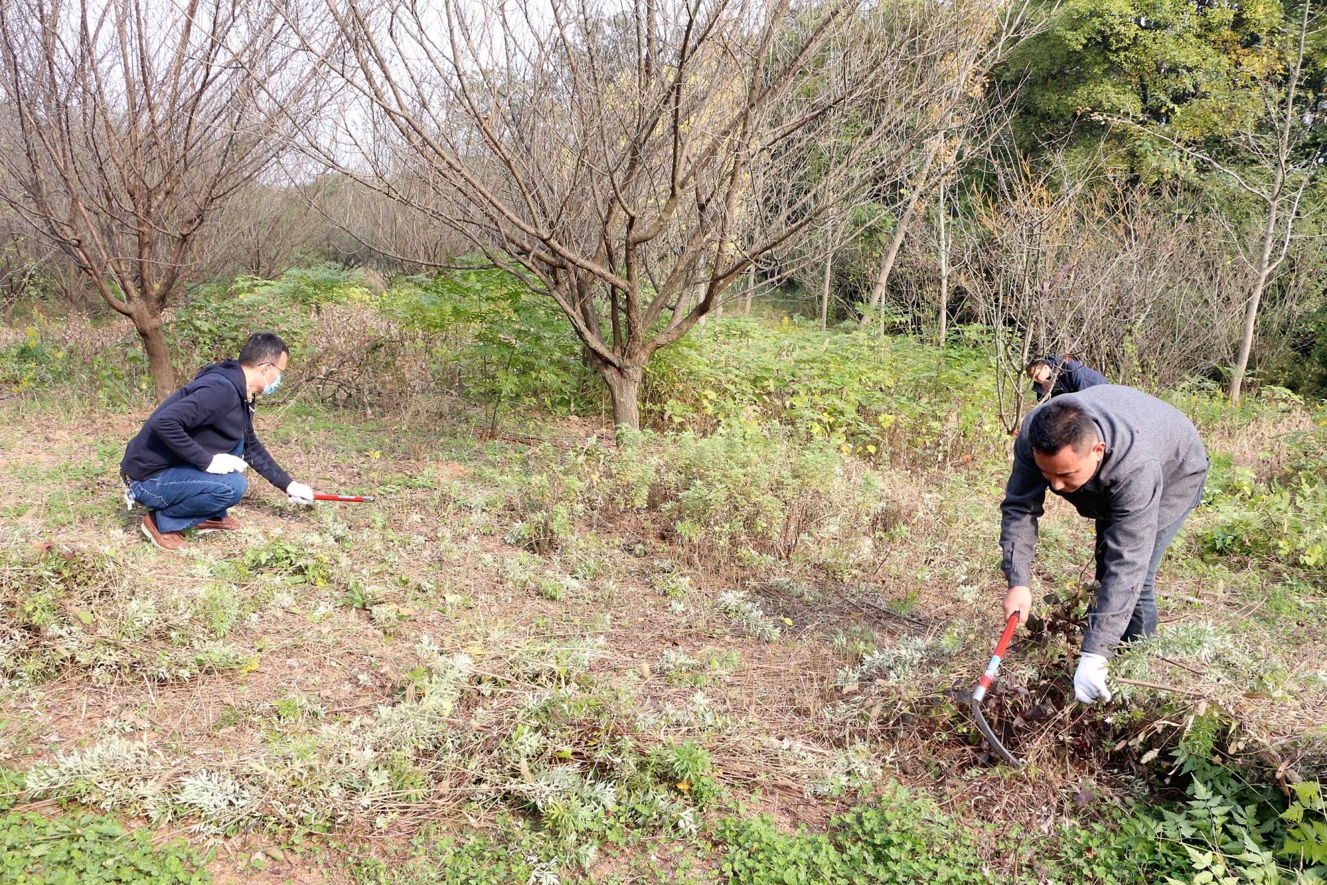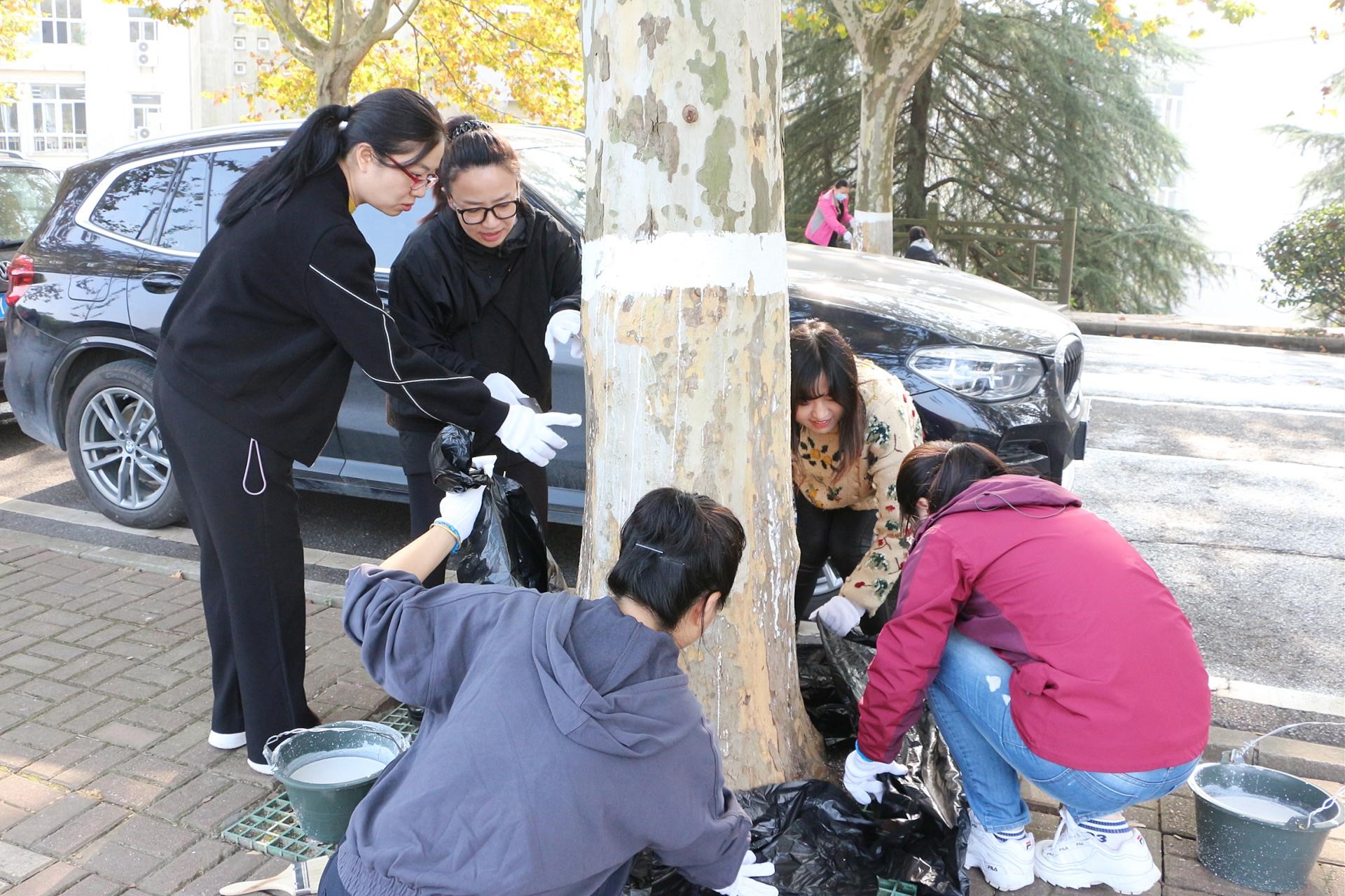 党员同志们一同前往江浦校园内的天宝阁、梅花谷等地,开展梅林清杂、枝条修剪以及行道树除害、刷白工作。活动现场,党旗飘扬、人头攒动。党员们奋勇当先、干劲十足,深入梅花谷的林间,用镰刀清除那些已攀爬上梅树的藤蔓、没过膝盖的杂草,用修剪刀剪除多余的梅枝条,用铲刀剔除行道树上的枯皮、虫巢,用粉刷为树木穿上一层层御寒防虫的白衣。大家紧密合作,默契配合,为美丽校园建设添砖加瓦。