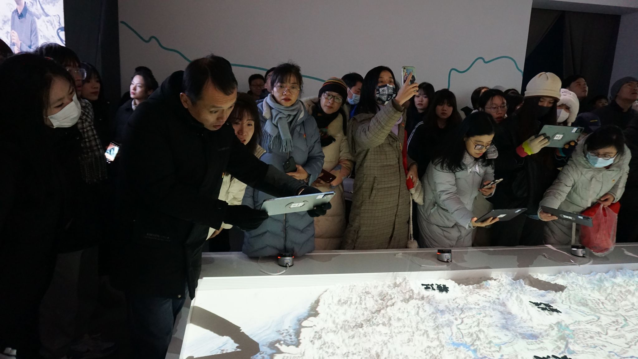 在展厅内,大家时而聆听讲解,时而驻足观看,时而互动体验,沉浸式感受长江文化的魅力。大家纷纷结合教学科研和课程思政,深入交流探讨如何运用现代科技、数字技术和艺术手法,更好地阐释和弘扬中华优秀传统文化的历史之美和时代价值,教育引导员工传承中华文脉,富有中国心、饱含中国情、充满中国味。