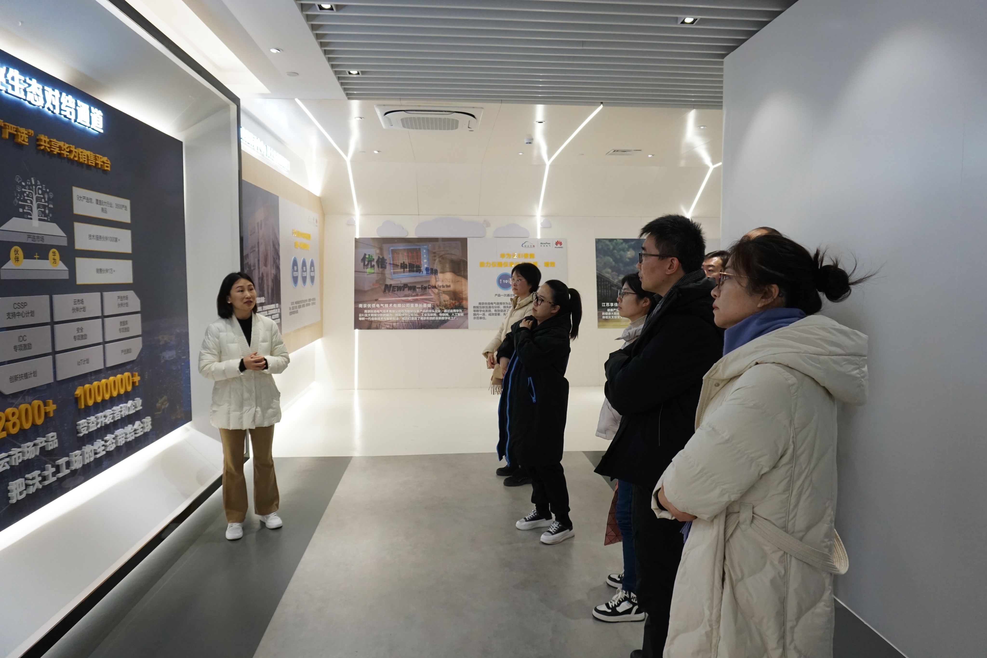 在华为沃土工场李亚钦的带领下,大家一同参观了沃土工场展厅,详细了解了沃土工场的发展历程、服务成果以及赋能企业智能化改造和数字化转型的沃土模式。教师党员们纷纷对沃土工场的服务能力和成果表示高度认可。