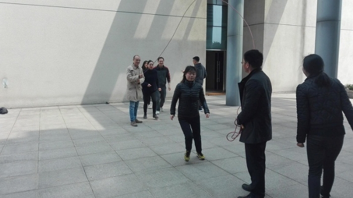 3月22日中午,在江浦校区行政楼与文科楼之间空地上,太阳集团tcy8722分工会积极组织教职工开展跳长绳比赛训练,许多老师得知训练安排后,自觉放弃了中午休息时间,积极地响应院分工会号召,投入到本次训练之中,大家都有这样一种目的,借助于教职工文体活动的平台,促进公司教职工平时的锻炼,加强同事之间的广泛交流,展现太阳集团tcy8722教职工的风采。