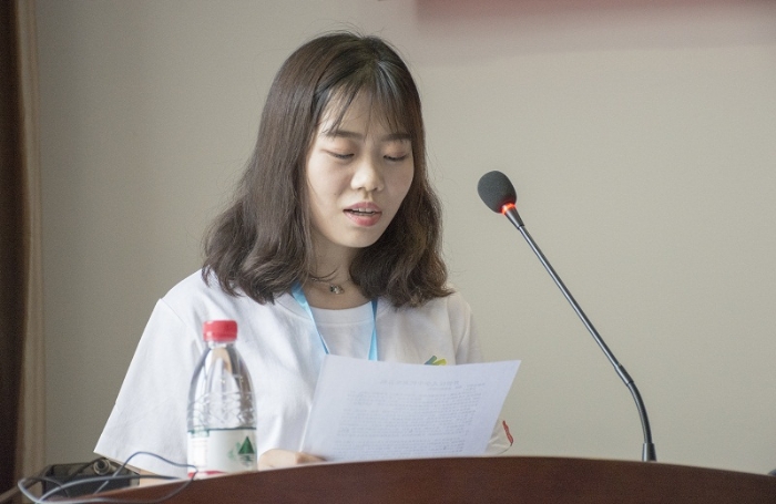 接着,公司数字媒体专业石佳玉同学代表营员作了表态发言,表示一定珍惜这次暑期夏令营机会,积极参加每一次活动,带着问题用心学习,加强同学之间交流,做到相互学习、相互帮助,遵守各项纪律,放组织者放心。
