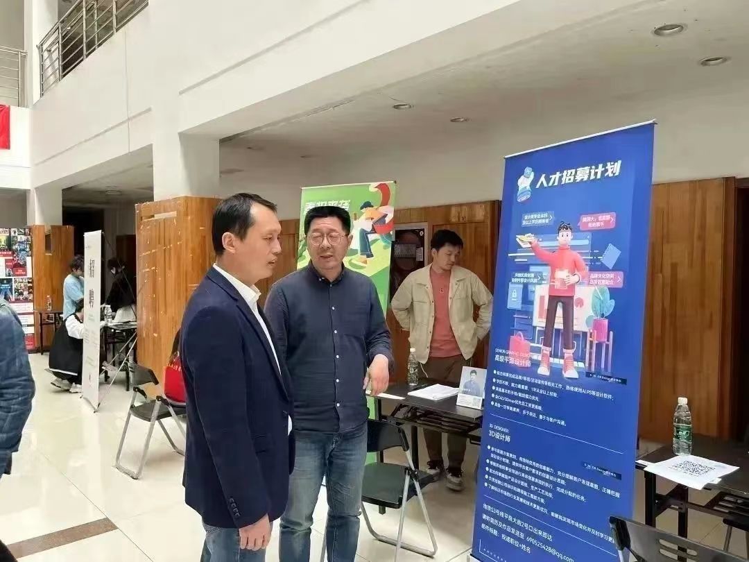 中青旅江苏国际会展有限公司、海澜之家集团股份有限公司、南京国豪装饰安装工程股份有限公司、思德展示科技股份有限公司、江苏原力数字科技股份有限公司、南京木马工业设计有限公司、苏州园科生态建设有限公司、丰传文化传播有限公司、投石科技等37家企业合力助推300多个岗位。前来应聘的毕业生积极与用人单位交流沟通,领略企业文化、了解岗位要求、明确发展目标、表达就业期许。大三员工主动咨询暑期实习需求,应聘实习岗位,锻炼自身能力。同学对招聘会提供的高质量岗位非常满意,用人单位对公司毕业生的专业技能及综合素养普遍给予了高度评价。公司党委书记周静、副书记李有林及各专业教师与前来招聘的企业负责人热情交流,感谢各单位对公司就业工作的支持,为下一步深度构筑校企合作,开拓优质就业创业实习实践基地奠定基础。