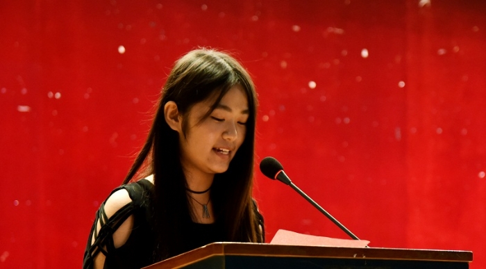 老生代表、国家奖学金获得者、工设1401班印雨馨发言