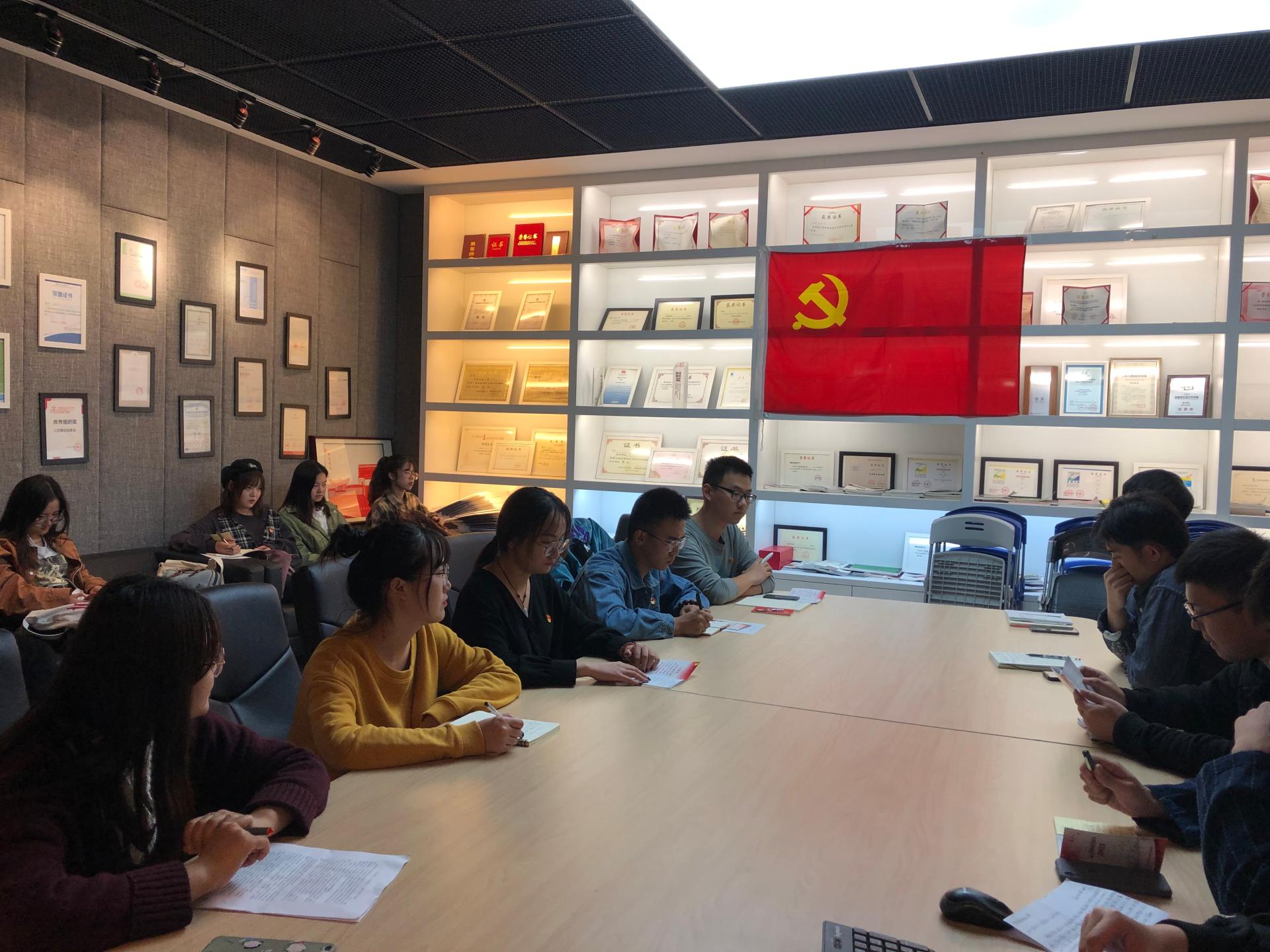 10月11日晚,进行第二次集中学习研讨。首先,张毅鹏强调了主题教育对党支部和党员的学习工作要求,在庆祝中华人民共和国成立70周年之际,全体党员要深刻认识“不忘初心 、牢记使命”主题教育的重大意义,结合员工党员的身份,深刻理解初心和使命的含义。接着,全体党员依次发言,积极探讨“初心是什么、使命干什么、奋斗比什么”。张子淳结合学习感受,解读了老一辈共产党人的初心,回顾了自身入党初心,表达了要坚守和传承的决心;高涵茜结合自身实际,在进一步认识了新时代赋予的使命的同时,表达了以专业知识投身实践、贡献力量的决心;赵丽君表示奋斗是实现初心和履行使命的最好路径,只有保持积极向上的精神状态,砥砺奋斗,脚踏实地,才能实现新时代党员的担当。最后,两位支部书记结合大家的发言进行了总结,要求各位党员把学习教育落到实处和深处,不能简单停留在微信群里的转发和学习平台上的点击,应当检视问题,找出差距,切实把本次教育成果运用到生活和学习中去。
