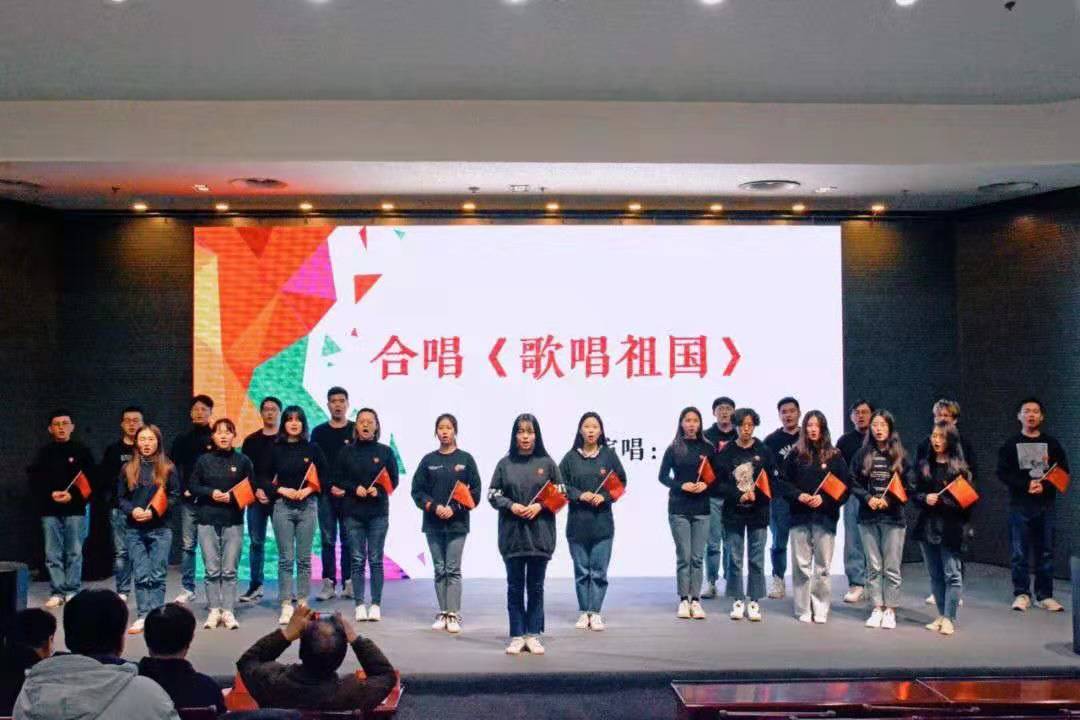 产品设计1702班全体同学合唱《歌唱祖国》。红色的旗帜在手中紧握,洪亮的歌声在报告厅回响,热情流淌,梦想高唱,拉开了梦想公开课的帷幕。