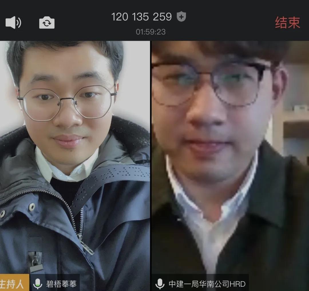 郑超先生从就业基本行情、考研和涌入就业市场比例、疫情期间视频求职该做的准备、以“中建人”为例简介职业发展等四个方面出发,给毕业生指明了疫情期间就业的方向。郑先生本身也是艺术类专业毕业,他结合自身求职经历和人力资源部工作经验,娴熟地运用腾讯会议APP投屏播放PPT,生动地重点阐述了疫情期间艺术类专业员工视频求职应当注意的事项,帮助艺术公司同学们树立了信心,给大家带来了精彩的“云”讲座。