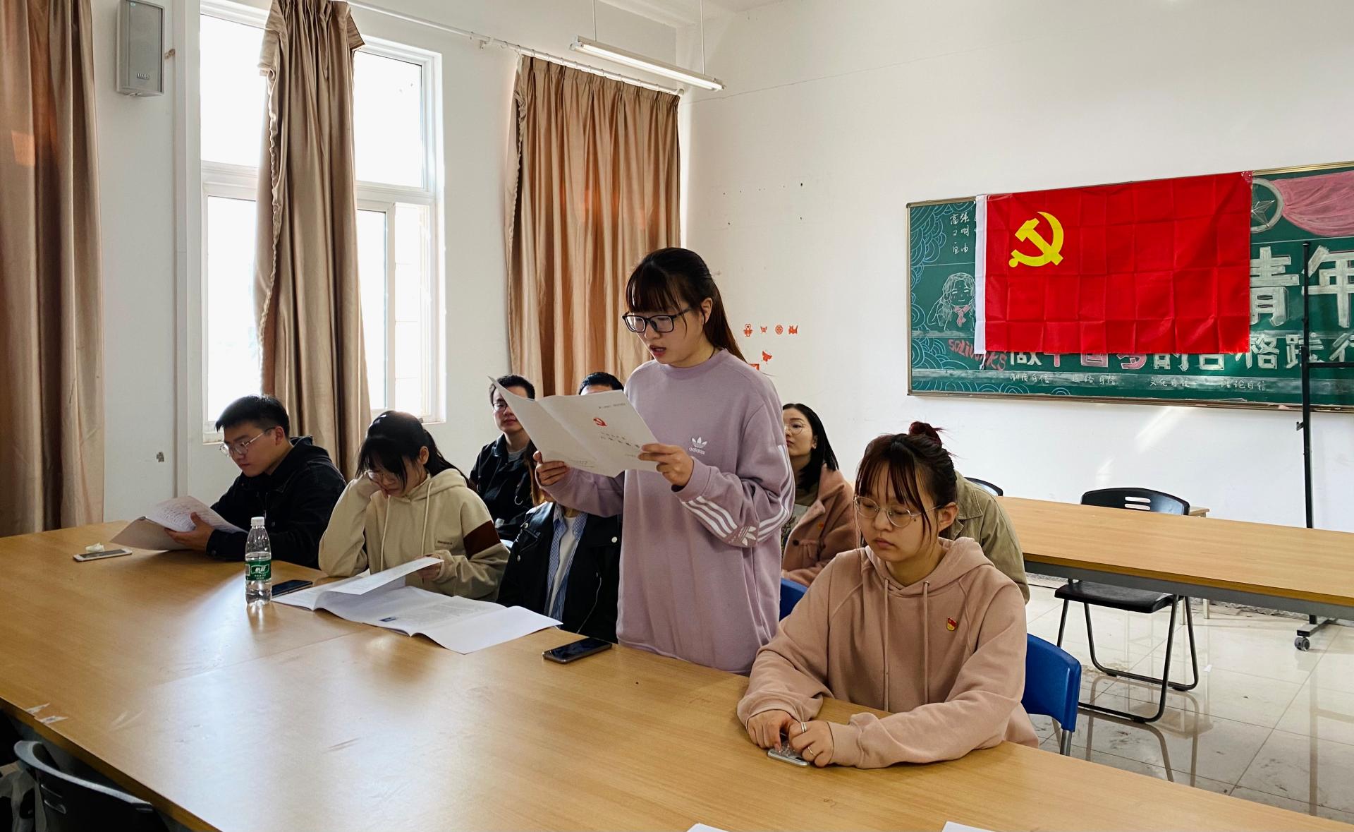 大会在庄严的国歌声中拉开帷幕。根据发展新党员议程,支委书记王志铖介绍了党支部对九名发展对象开展政审的情况、群众座谈会召开情况、公司党委预审情况以及发展大会前所做的工作。支部逐一讨论了叶雨、李菲、杨颖、王心恺、徐莺蝶、孙岚、柯心怡、潘俊羽、马玮逸等九位同学的入党事宜。由发展对象宣读入党志愿书,陈述个人思想、学习、工作、生活等方面的表现情况;入党介绍人对发展对象在考察期内培养教育以及考察情况向大会作了介绍,就发展对象能否入党发表了意见;支部党员进行了广泛讨论;支部有表决权的正式党员逐一对九名发展对象进行了无记名投票表决;形成并通过了接收发展对象为预备党员的支部决议。