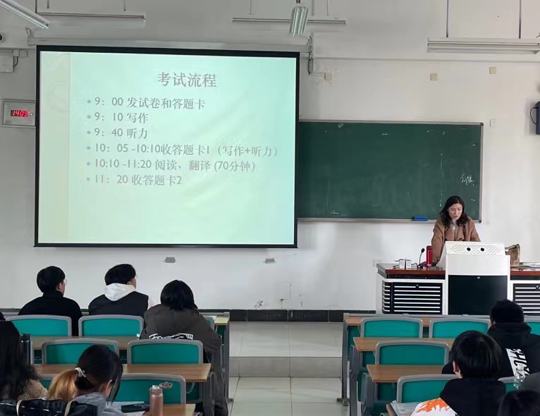 首先,陈皓老师结合自身丰富的大学英语教学的经验,提醒同学们要抓紧时间,提高效率。然后向同学们仔细讲解了英语四级考试的流程和要求。接着分析了四级考题的题型及对应的分值,总结了各个题型的解题策略,强调复习单词的重要性,希望同学们可以按照科学的背单词方式,充分利用零碎时间,有规划地进行单词记忆复习。最后,陈皓老师鼓励同学们要对考试充满信心,发挥出自己的水平,祝愿同学们顺利通过英语四级考试。