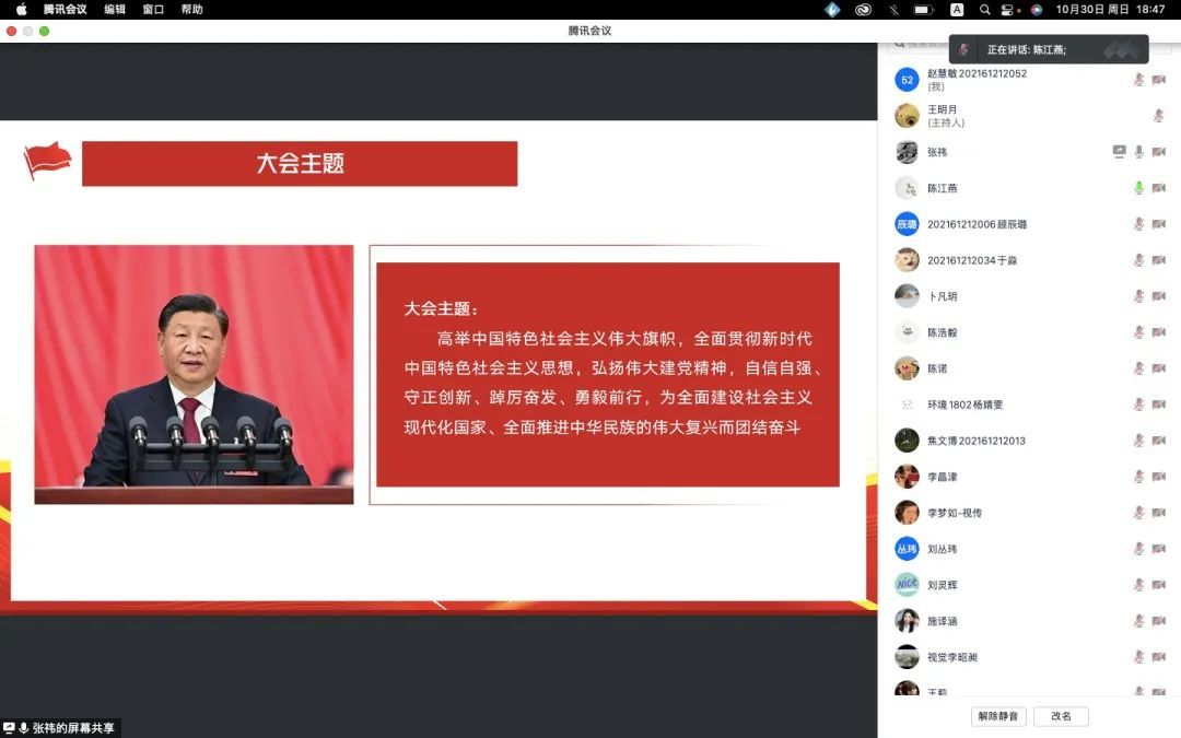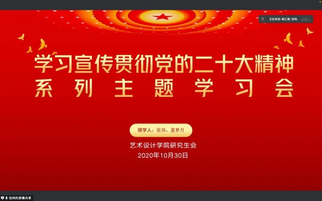10月30日晚,太阳集团tcy8722研究会于线上开展了学习宣传贯彻党的二十大精神理论学习会。会议由主席团成员陈江燕主持,学术部张祎领学,全体研究生会成员参会。