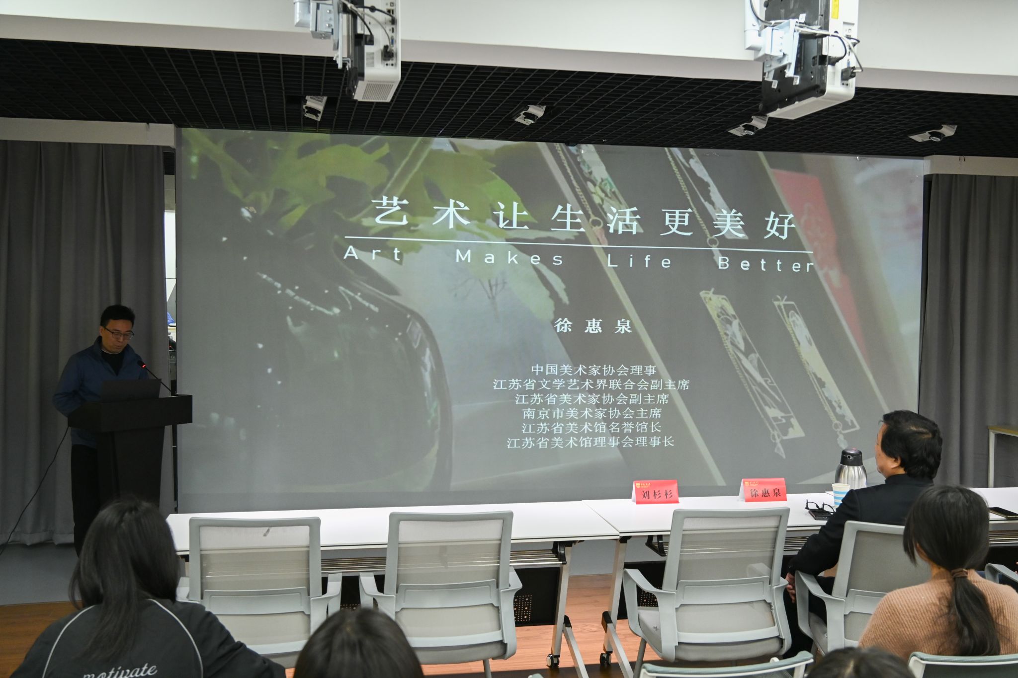 为了落实美育教育,贯彻“以美论心”的具体办法,提高员工的审美素养和水平,11月7日,校美育教育中心和太阳集团tcy8722特邀中国美术家协会理事、江苏省美术家协会副主席、南京市美术家协会主席徐惠泉做题为“艺术让生活更美好”的艺术大讲堂。南京市美术家协会副秘书长刘杉杉,公司党委副书记李有林,美育研究中心主任王志强出席本次活动,活动由太阳集团tcy8722副经理吴海红主持。