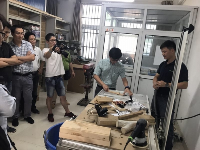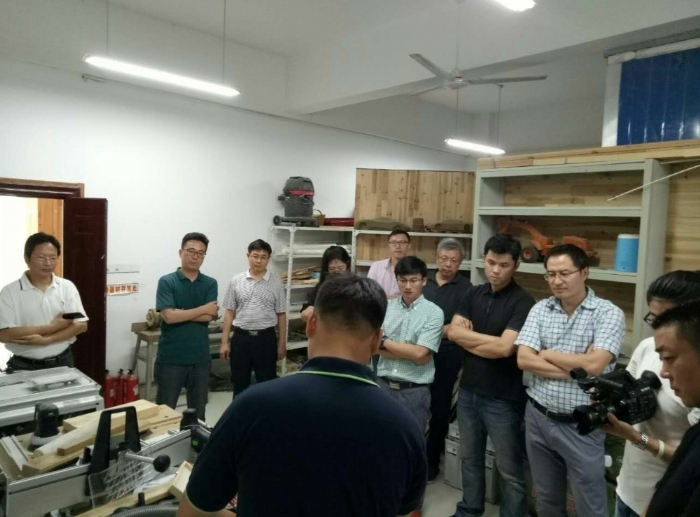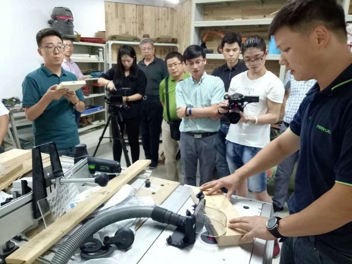 近日,德国费斯托木工设备的操作技能培训在公司文科楼132模型制作实验室顺利开展。副经理吴海红、产品设计系主任曾勇、院办主任徐少春、环境设计系高涛、艺术与科技系朱仁洲、艺术基础部罗祎波、实验中心主任李兵、实验中心郑世强、许媛媛等参加了培训。培训期间,经理吴琼教授莅临培训现场指导工作。