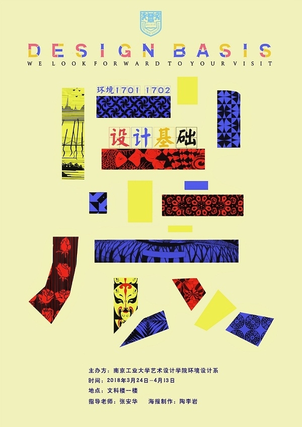 设计基础是环境设计专业一年级的基础课程,该课程的授课老师为环境设计系的张安华老师。设计基础课程的学习内容是从抽象化的点、线、面、体等基本元素开始,摆脱传统陈旧的思维的制作方法,对各元素进行打散重新组合,从而获得全新的构图。该课程的主要训练内容主要包括三个方面:一、平面构成的练习\u002c包括重复、近似、渐变、发射、矛盾空间等;二、色彩构成的练习,包括色彩分析、色相、明度、纯度的推移等;三、综合构成的练习,即基于前两者的练习,以“魅力南工”为主题作一个综合构成。本次课程的所有练习均采用手绘(综合构成中涉及部分肌理构成)的表现形式,为环境设计员工后续“表现画、设计初步”等课程的学习,打下了坚实的基础。