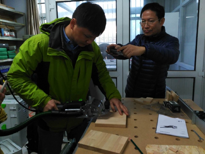 通过这一培训,不仅提升了公司老师切实操作德国费斯托木工设备的能力,同时对于后续木工相关实验课程,尤其模型制作课程的顺利开展帮忙极大。