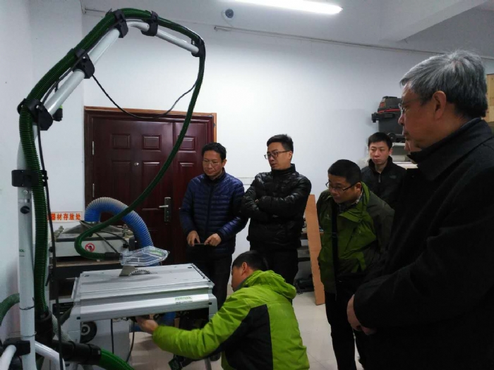 2016年12月2日上午,德国费斯托木工设备的操作培训在文科楼132模型制作实验室顺利开展。前来参加培训的人员有:实验中心主任李兵老师、产品设计系主任曾勇老师、工业设计系主任吴海红老师、艺术与科技系朱仁洲老师、美术系曹洪霞老师、实验中心许媛媛老师以及郑世强工程师等。