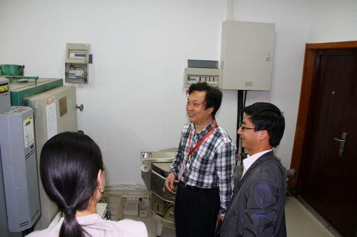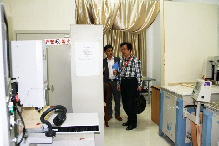 教育部本科教学工作审核评估专家、东南大学教务处处长雷威教授察看模型制作实验室
