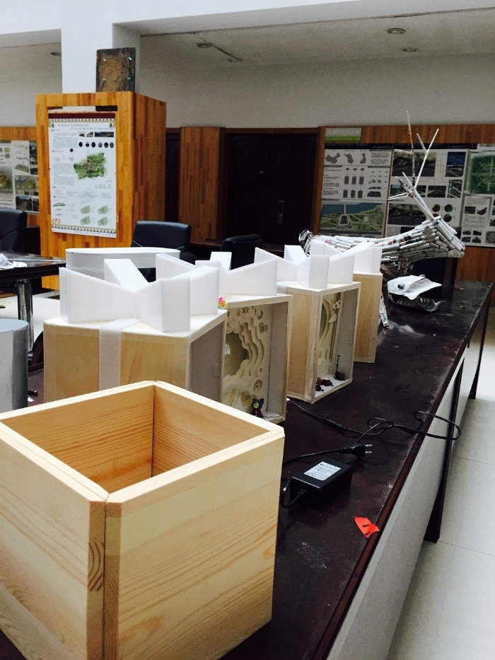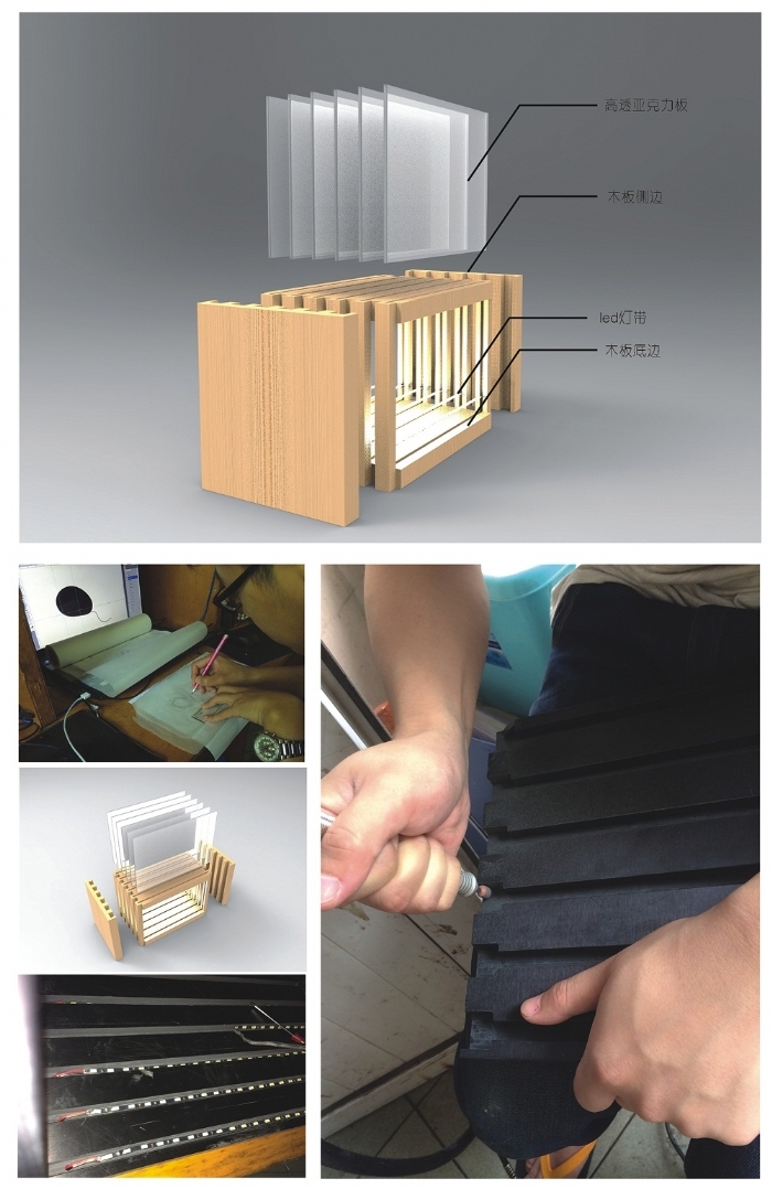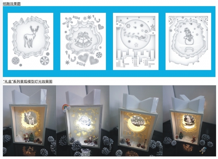 本届毕业生的毕业设计作品展中的“商业美陈与装置设计”,呈现了如下亮点:一是选题新颖大胆,二是毕业生自己动手制作了可演示的实物模型。设计者尝试了将艺术与技术充分融合,将传统造型艺术通过现代科技予以演绎,令人感觉耳目一新。如:会展1201班王建宇同学的作品,将有机玻璃雕刻、冷光源LED灯通过单片机控制依次发光,产生了动画效果,且运动速度可以任意调节。会展1202班李珊同学的作品,将纸张激光雕刻与LED灯带相结合,产生美轮美奂的展陈效果。