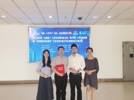 经校赛、省级复赛和省级决赛三个阶段,评选出南京大学“Insta360全景相机”团队等一等奖项目30项、二等奖项目71项,三等奖项目109项,最佳创意奖、最具商业价值奖、最佳带动就业奖和最具人气奖各1个,高校优秀组织奖21个,优秀指导教师30位。 公司往届硕士毕业生孙波、宋奕孜创办的知物工业设计有限公司,在吴琼导师指导下,和在校研究生团队的合作下荣获江苏赛区二等奖。