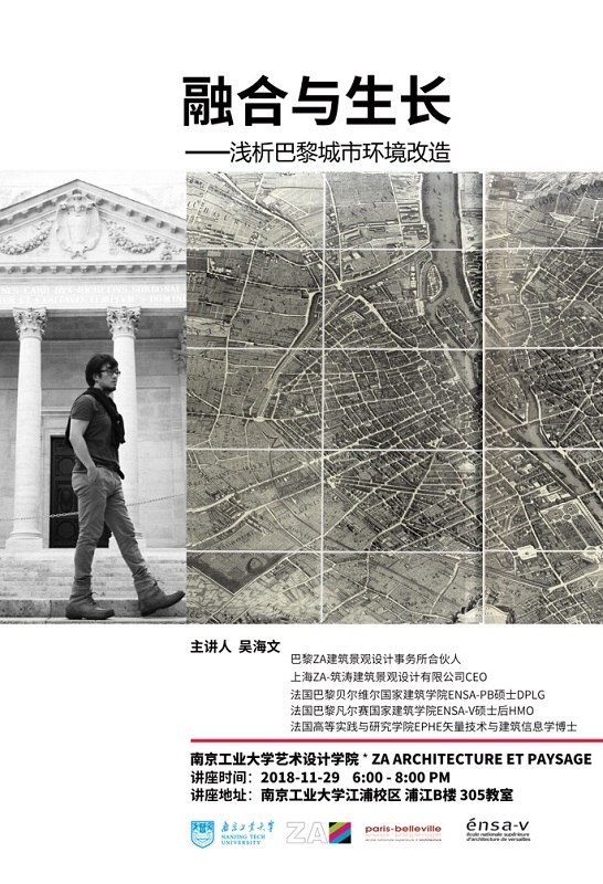11月29日晚,太阳集团tcy8722邀请到了上海筑涛建筑设计有限公司董事长以及法国建筑事务所Zone Architecture et Pasages de Paris 的高级合伙人吴海文博士在公司江浦校区浦江B楼305教室,为公司师生带来了一场生动而精彩的以巴黎城市与环境改造为主题的专业讲座。