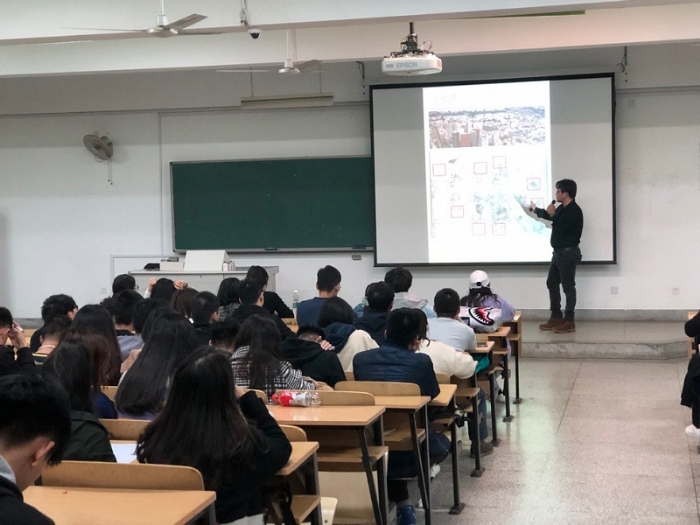 然后,吴博士讲解了未来城市空间改造趋势和方向,并对同学们强调景观设计的社会意义:仅仅认为景观设计就是绿化,这是对环境设计以及景观设计的误解。未来的环境设计具有着合理分配城市功能,节约社会及自然资源,赋予社会公共空间人文及经济功能等重要作用,因此未来的设计师们应该更多地考虑如何节约建造与维护成本;使用与自然贴近的建造材料;合理利用设计技术,材料技术以及建造技术使设计形态更加自由。譬如造成我国空气污染问题的主要原因并非一般认为的工厂废气,秸秆燃烧或者是城市油烟,而是因为土地的荒漠化,而这应该成为环境设计的同学今后关注的方向,并且意识到自己所学专业的社会意义。
