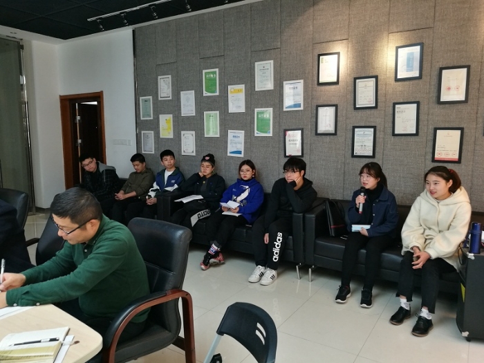 大学学习不同于高中,艺术专业学习更是负担重、压力大。吴海红副经理勉励各位同学要加强与老师的沟通、交流,增强学习的主动性和自觉性,认真完成作业,有效利用课余时间,积极参加竞赛及实践项目。对于大家提出的问题,公司会高度重视,有的会及时向公司有关部门反映,争取尽快得到解决。