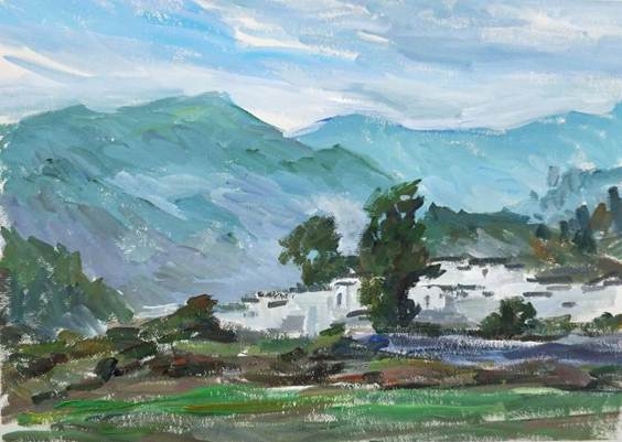 写生的这些日子是快乐兼并着劳累的,每晚的评画总是让大家既心惊胆战害怕被罚又期待着老师的夸奖。经过一天的专注,因为很累,晚上大家都早早的休息,盼望着明天能有进步。临走的倒数第三天,由于天公不作美,下午天上下起了大雨,于是下午进行了总的评画,把前面几天的画拿出来与后面几天的做了对比。只有把自己所有的画放到一起时才能感受到自己的进步,才能感受到老师评价自己进步很明显时的开心。当自己的努力被老师认可,看到每一张画都在进步时,自己才是最欣慰的。
