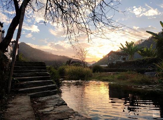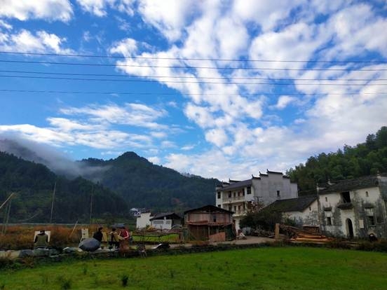 写生的地方是婺源的一个小村子——庐坑。刚到那天下午,老师带着我们去村子里大概看了一下风景,为第二天写生做准备。庐坑四面环山、早晚烟雾缭绕、小桥流水、古树成群,民居无统一规划,错落有致的分布,用“自然”二字来形容最贴切不过了。这里人日出而作、日落而息,村民非常淳朴、自然,在这里,一切都十分宁静、祥和,仿佛大点声就会打破这种宁静,所以,很适合用同学们写生。村子里给人印象深刻的就是一株两人合抱的大树、随处可见的写生人群和摄影者、詹天佑的雕像以及肥大的锦鲤。庐坑看起来有悠久的历史,经历了很多,村子里还遗留着当时日本政府贷款造林项目的石墙,古居外墙壁上残留着文革时期写上去的口号等。