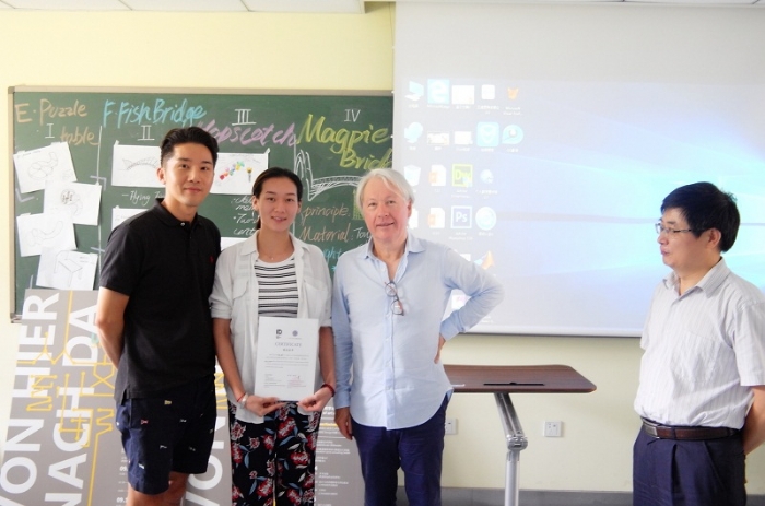 14日下午至16日上午,Fischer教授为公司30名研究生及本科生开设主题为“桥”工作坊课程。通过Fischer教授及其团队认真细致并且富有启发的指导,同学们最终顺利完成了作品创意、三维渲染、模型制作全过程。在最后课题成果汇报中,Fischer教授评价作品时给与了高度评价:非常欣赏同学们的创意,能在如此短暂时间内完成这样的作品,比这更好已不可能了。工作坊结束后,Fischer教授为每位员工颁发了证书,并同大家合影留念。同学们也非常感谢Fischer教授及其团队的悉心指导,感谢公司为他们提供的学习和交流机会。