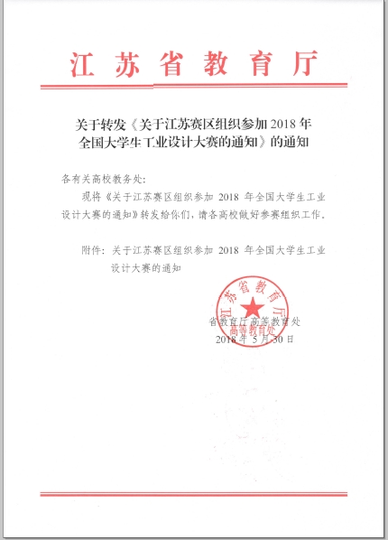 江苏省教育厅 关于转发《关于江苏赛区组织参加2018年全国老员工工业设计大赛的通知》的通知