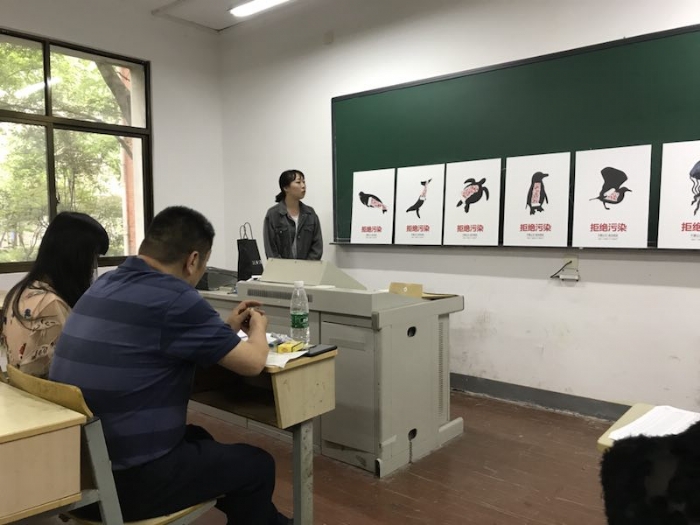 在答辩前,同学们展示近四个月的毕业设计,包括系列海报、产品包装、系列手绘、展示设计、文化创意衍生品设计、环境设计以及视觉识别系统等设计作品。在答辩时,同学们介绍自己所做毕业设计的背景、创意构思、表现手法和在实际操作过程中遇到的问题。答辩老师对同学们的毕业设计给予了逐一点评,指出存在的主要问题和不足之处,并提出了修改完善的意见和建议。上午,公司经理吴琼老师专程来到答辩现场看望了大家,并了解了同学们的答辩情况。