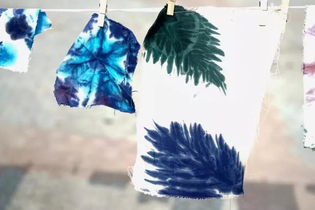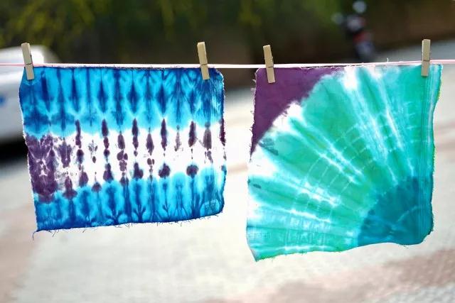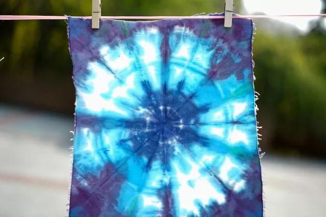 扎染运用布料和染料的结合,再加上各式各样”扎”的手法,通过到染料桶中的“浸”/“蘸”/“滴”各种方式,便能得出千奇百怪,各色各样的扎染图形。