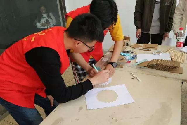 活动从下午两点正式开始,工作人员便早早地来到。如火如荼的现场有他们忙碌的身影,从前到后布置现场,拉起横幅,将活动道具、材料摆置完毕。