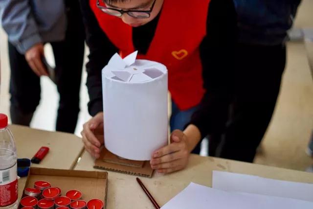 走马灯的制作分为三个部分:顶面“百叶窗”/四周灯罩/底部蜡烛和竹签支架。通过测量黏贴 拼接的手法组成整个走马灯罩再加上底部源源不断的“热流”涌上,一个个栩栩如生的走马灯便旋转了起来。