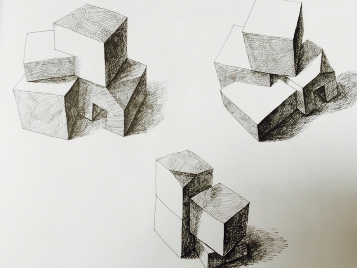 此次课程作业展由作业集和实物模型两部分组成,内容包括“线描速写、精微素描、立方体加减、向大师学习”四大模块。所有作业包括作业集,均要求纯手工完成。