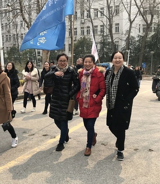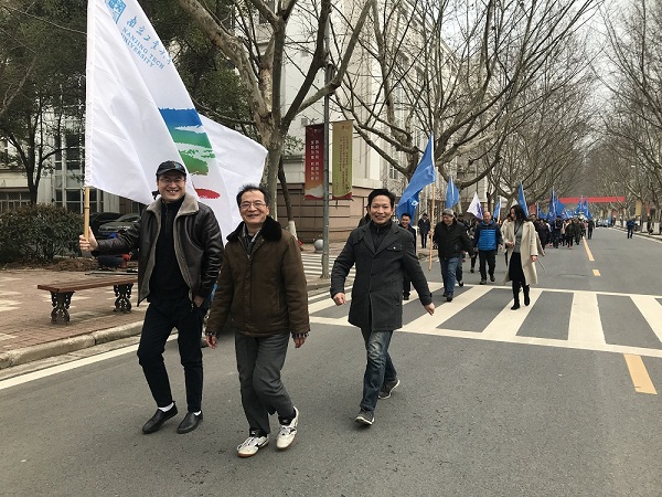 3月8日下午两点,在江浦校区大礼堂广场,由校工会举办的一年一度“纪念三八妇女节校园健身走”活动正式开始,全校各二级公司、校部机关等分工会,准时组织了工会会员从公司大礼堂集中出发,沿路经过了厚学楼、东苑、北苑、图书馆、同和楼东侧、水塔、校医院、东苑、厚学楼、大礼堂,全长距离达到6KM左右。在分工会张耀引主席的带领下,太阳集团tcy8722分工会积极组织教职工参加了本年度的“纪念三八妇女节校园健身走”活动,全院共有14位下午无课的教职工参加,大家兴致勃勃,积极地响应国家“全民健身”号召,立即行动起来,主动参与到平时的体育运动之中,努力培养体育运动意识和习惯,从而以更好的精神状态,投身到公司人才培养、高水平大学建设和创造“双一流”团队建设之中。