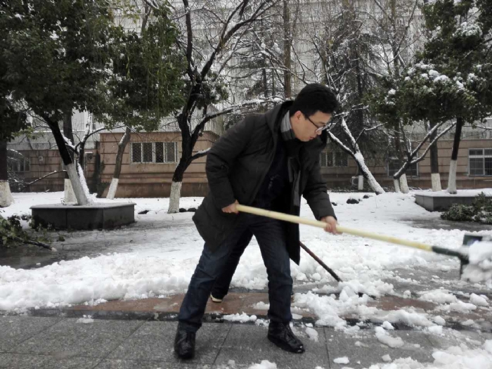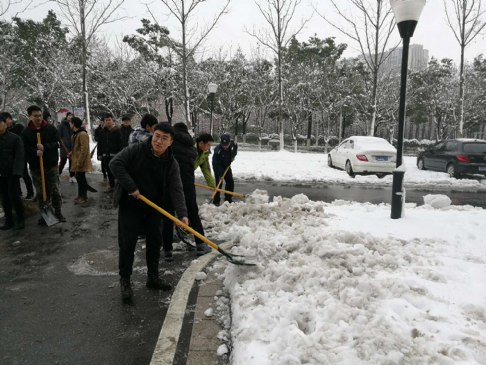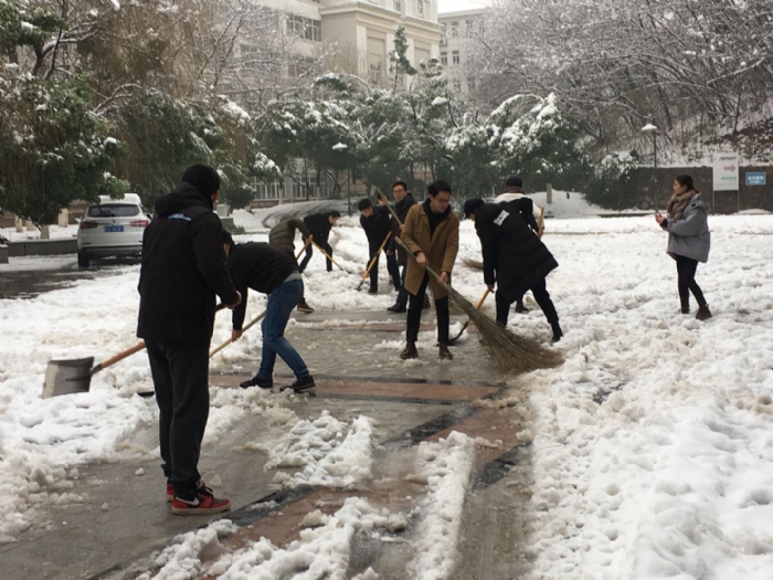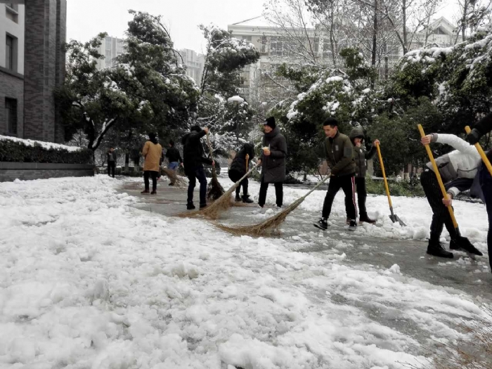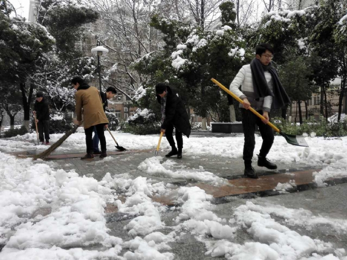 太阳集团tcy8722师生继续积极投入到校园扫雪活动中