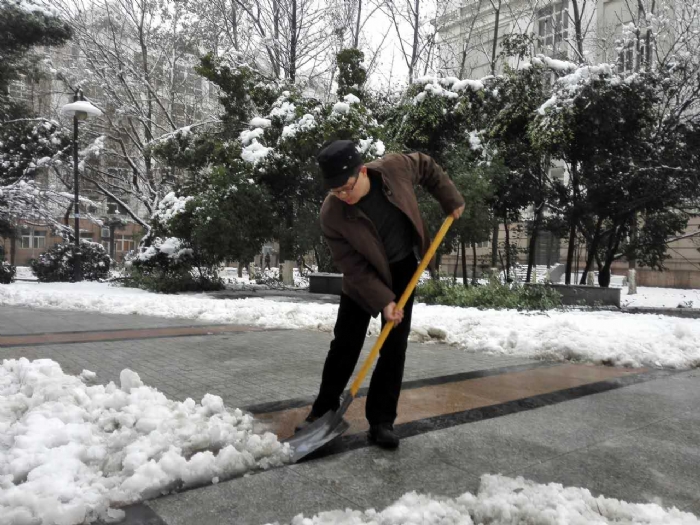 艺术公司员工义务协助物业清扫文科楼旁的道路