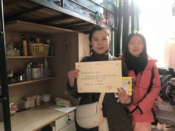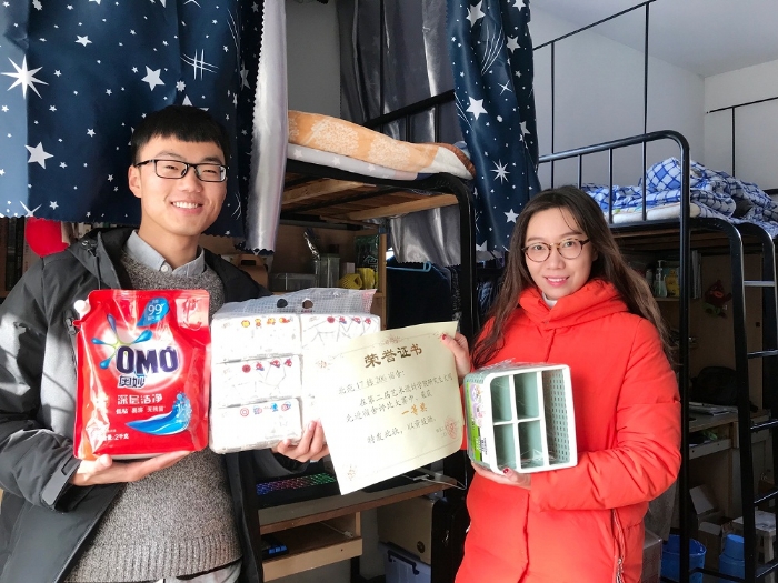 为了进一步完善研究生宿舍卫生和安全管理,营造一个干净整洁、温馨和谐的宿舍环境,太阳集团tcy8722研究生会举办了第二届“研究生文明先进宿舍”评比表彰活动。1月11日上午10点,在研究生各宿舍,举行了颁奖仪式,颁奖由公司研究生会主席团、各部门部长和生活部全体成员组成。