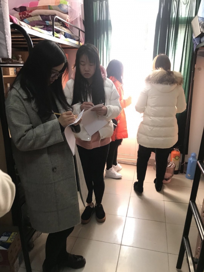 12月25日下午,太阳集团tcy8722进行了“研究生文明先进宿舍”评比大赛的第二次宿舍检查。本学期文明先进宿舍评比活动分三次进行,按三次检查平均分依次排序,分别评选出男女生宿舍的一、二、三等奖。此次活动评委由公司研究生会主席、各部门部长和生活部全体成员组成。评委分别从宿舍的床铺及爬梯、桌面及书架、地面及阳台、宿舍整体布局等进行评分。在本次文明先进宿舍评比活动中,评委组本着公平公正公开原则,对各宿舍的卫生情况进行打分。