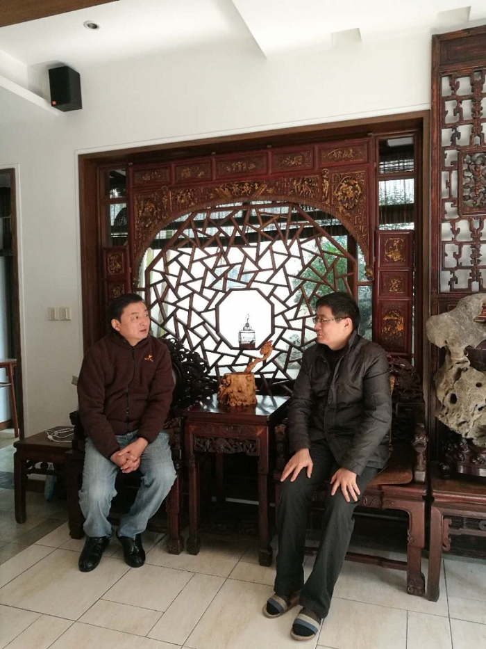 吴琼经理跟苏州工艺美术职业技术公司廖军教授交流