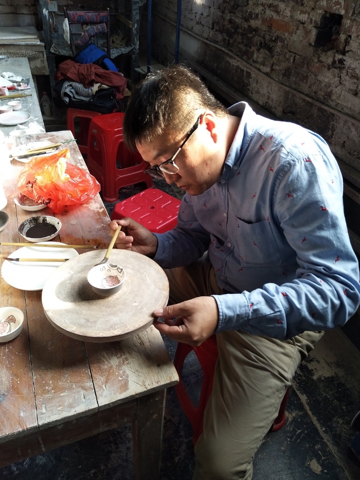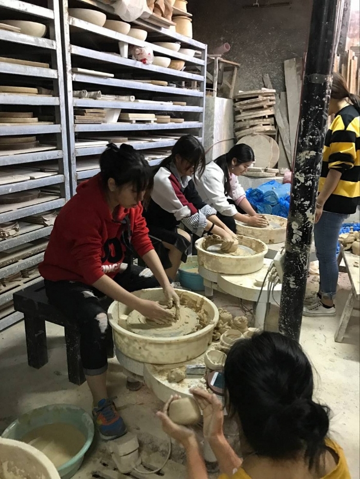 今年十月下旬,太阳集团tcy8722视觉1401班进行了为期一周的景德镇陶瓷文创设计调研。瓷器在古代便被称为第五大发明,如今常作为设计的载体出现,瓷都一直是同学们心中所向往的地方。为了了解传统的制瓷工艺,我们参观了景德镇古窑博物馆,那里保存了世界上最古老的制瓷生产作业线,从一堆泥土到具有艺术价值的瓷器,要经历很多步骤,从作坊外的练泥,作坊里的拉坯、印坯、利坯、晒坯、刻花、施釉,最后就是烧窑,每一步需要师傅们巧夺天工的手艺,丝毫马虎不得。当我们踏入明清时代就存在的作坊,看到老师傅们精湛手艺,有一刹那仿佛自己穿越到明清烧制官窑现场的冲动!