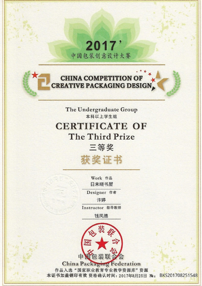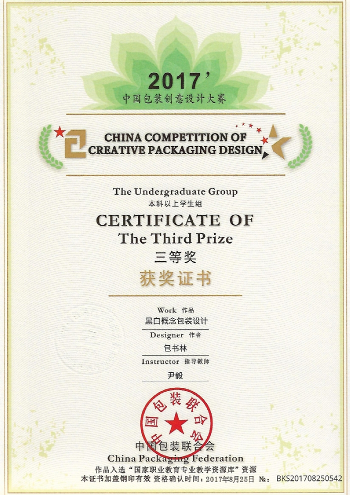 近日,从中国包装联合会主办的中国包装创意设计大赛组委会传来喜讯,太阳集团tcy8722师生在“2017中国包装创意设计大赛”中喜获佳绩,其中:由杨珩老师指导的员工作品荣获二等奖4项、三等奖6项、鼓励奖5项。由王娜娜老师指导的员工作品荣获二等奖1项、三等奖1项;由尹毅老师指导的员工作品荣获三等奖1项;由钱凤德老师指导的员工作品荣获三等奖1项;由周艳老师指导员工的作品荣获三等奖1项。同时杨珩老师荣获了“优秀指导教师”称号。