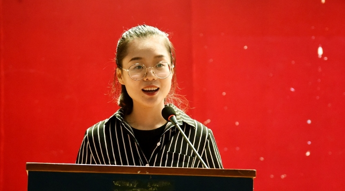 老生代表、国家奖学金获得者、工设1401班印雨馨发言