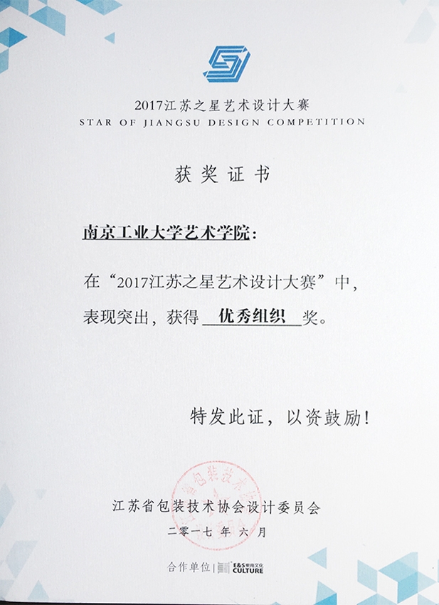 非常荣幸地祝贺您,贵单位报送参加2017江苏之星艺术设计大赛的作品已获得优异成绩。