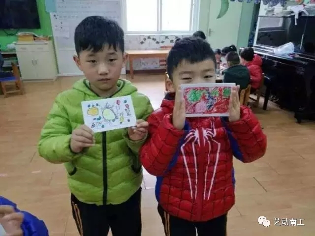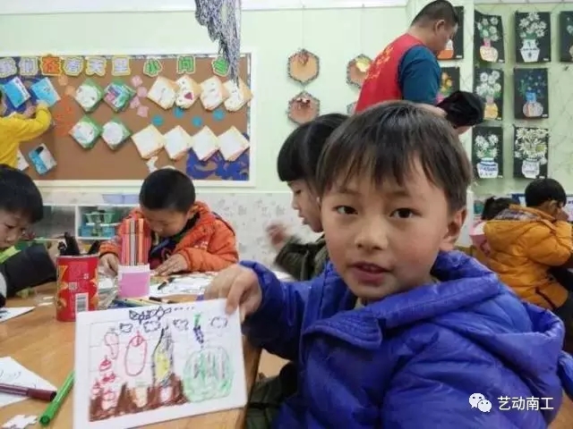 孩子们开始拿起画笔在空白的拼图板上画画,他们的想象力总是天马行空,丰富多彩的,空白的拼图上很快就画满了孩子们灵气十足的图案。志愿者在课堂最后与孩子们合照纪念,小朋友们可以把做好的自制拼图带回家成为他们的新玩具。