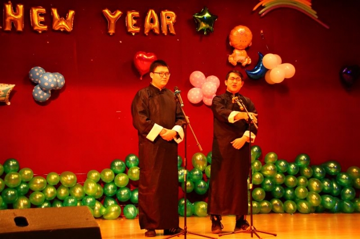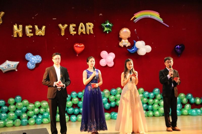 12月28日晚,太阳集团tcy8722、机械公司、建筑公司的三院研究生元旦联欢晚会在浦江报告厅华丽上演。艺术公司党总支书记陈建华老师;机械公司党委书记戴宏、研究生辅导员王巧云;建筑公司党委书记周挺、副经理施梁、团委书记周庆,应邀出席了晚会,并与三院师生带着对新一年美好期盼,欢聚一堂,共度良宵。晚会在晚上6:30分准时开演,4位主持人走上舞台,对到场的各位领导、老师、同学们表示热烈欢迎。随后,在全场观众热烈掌声中,主持人宣布元旦晚会正式开始。
