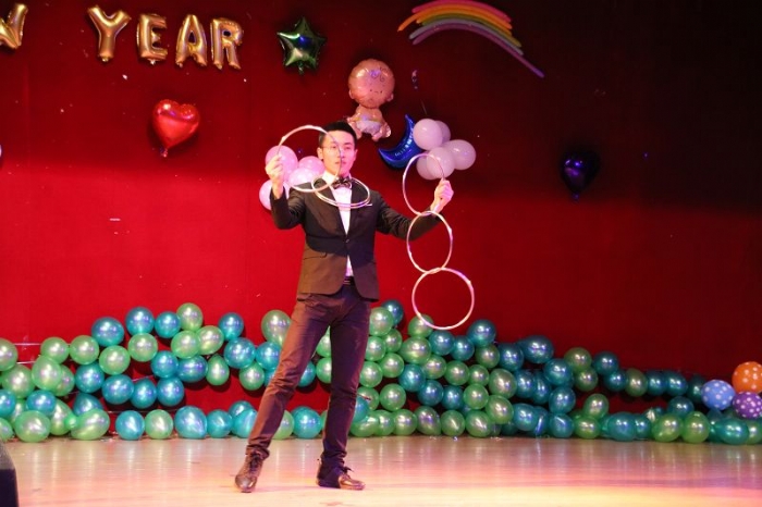 此次元旦晚会共有十三个节目,包括精彩的相声、火热的舞蹈、神秘的魔术、激情的演唱、风趣的小品等,让人眼花缭乱。晚会一开始,充满活力、激情四射的开场舞瞬间点燃了现场气氛。之后一首悠扬的吉他弹唱《米店》,开嗓惊艳了全场。由艺术公司研究生张鹏威和林文轩表演的幽默风趣的相声《生财无道》,配上两人诙谐的语言、搞怪的动作,以及现场同学的积极互动,把晚会推上了一个小高潮。活力四射的组合舞蹈《玻璃珠》、魔术表演《有魔有young》、男女对唱《只是没有如果》、话剧《非诚勿扰》、歌曲串烧等把全场的气氛点燃。由建筑公司带来的舞蹈《modern times》,性感的舞姿更引起了观众的阵阵尖叫和欢呼。随后的创意服装秀,体现了同学们洋溢的青春与活力,俊男靓女们的搭配很是养眼。三院合作小品《演员》让观众捧腹大笑。舞蹈串烧更突破常规,将优美的古典舞与搞笑舞相结合。最后,晚会在经典歌曲《老男孩》中画上了一个完美的句号。