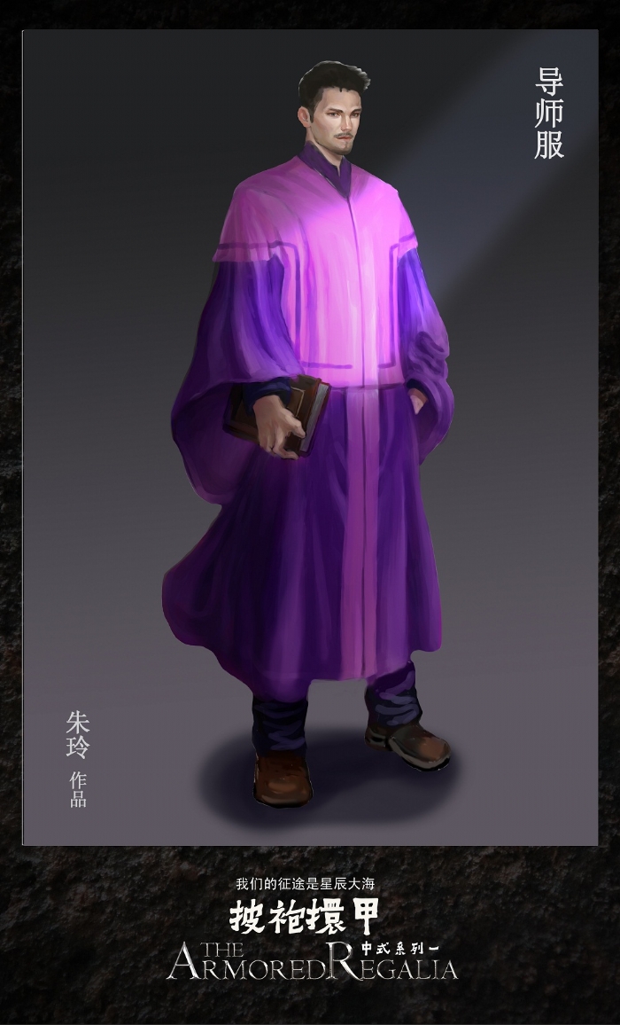 中式、欧式两个系列均按照统一的色彩模式进行设计,分别用普鲁士蓝象征学士服,地中海蓝象征硕士服,珊瑚红象征博士服,丁香紫象征导师服,梵高黄象征董事长服。