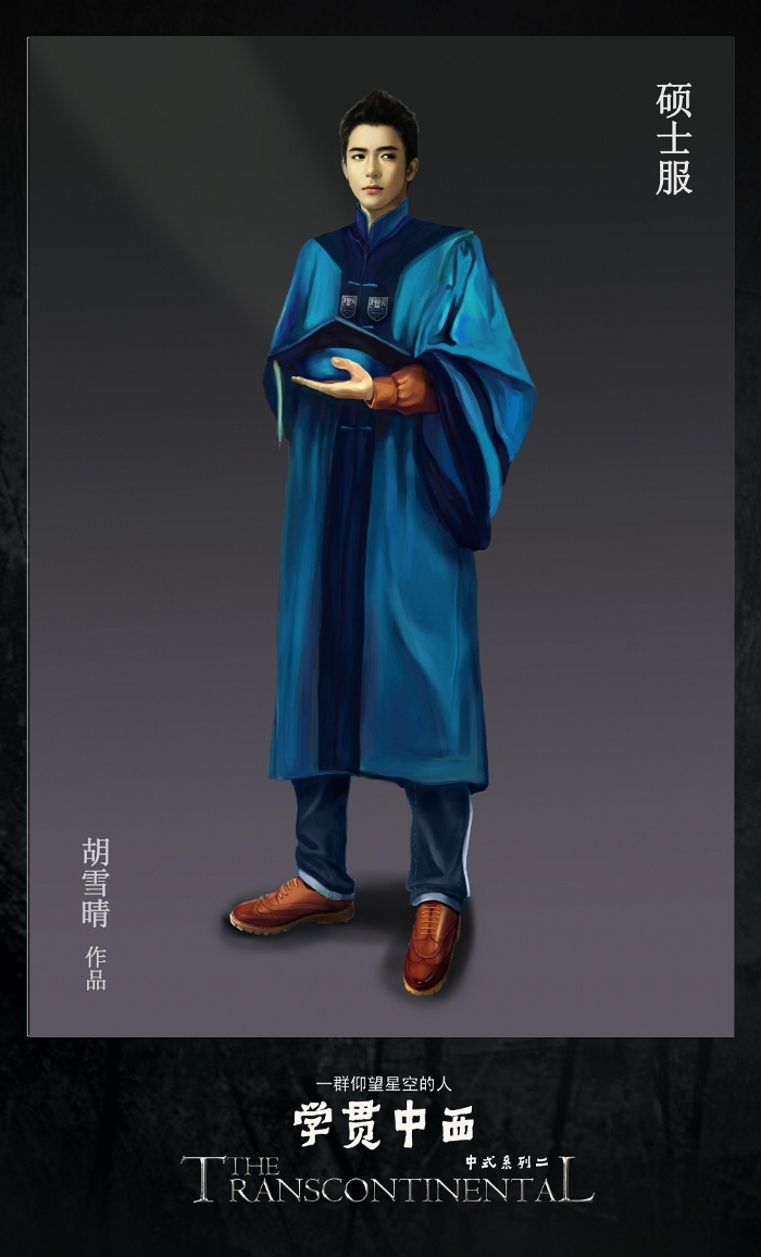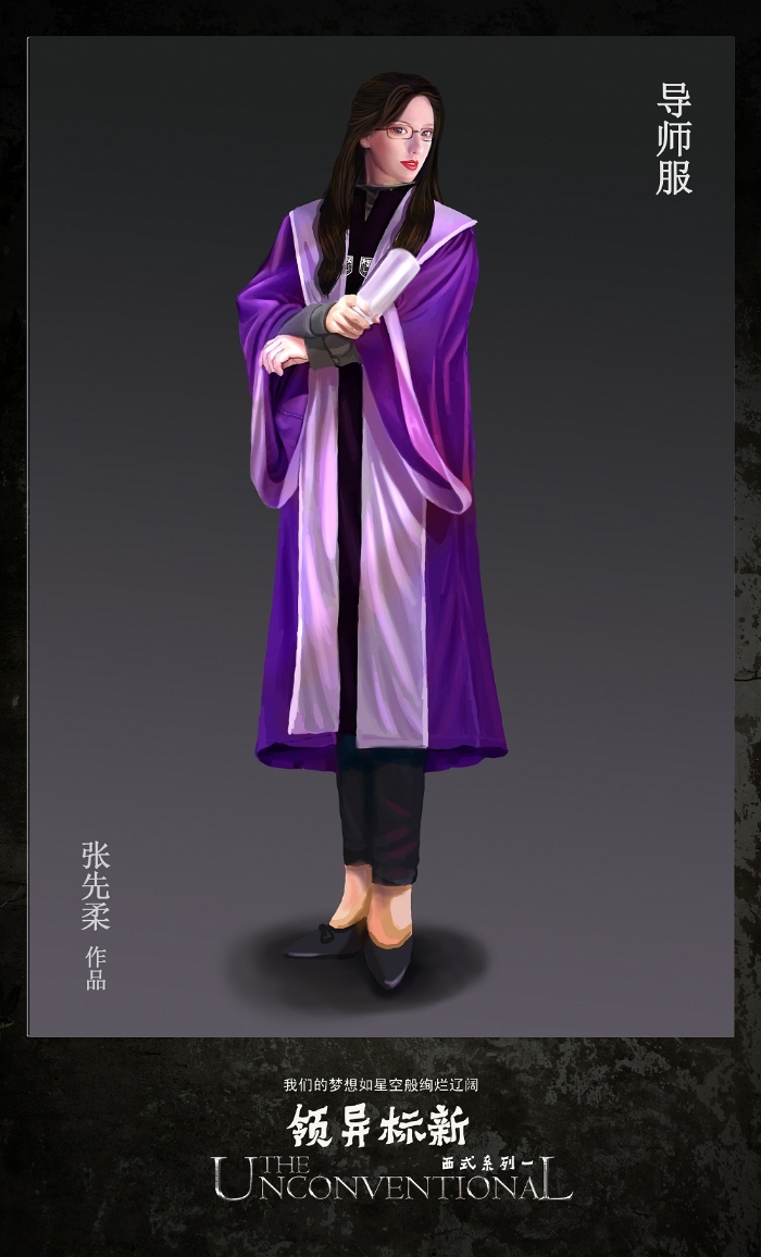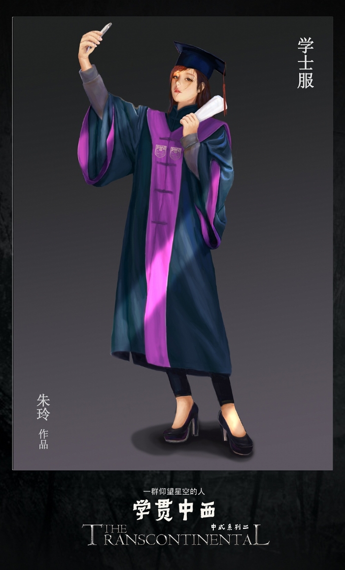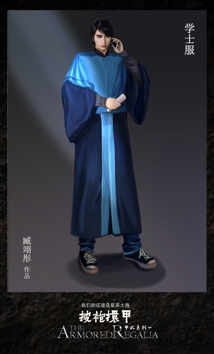 为了完整地展示学位服的风采,10位女生为学位服创作了20张数位板手绘效果图。这件任务的艰巨性在于,她们要在繁重的课业压力下,挤出时间去憧憬毕业生、导师、董事长身着学位服的神采,想象人体的结构姿态、表情的一颦一笑,衣服的纹理皱褶,然后选择美好的视角去表现它们。或许她们的作品还有些不尽如人意的地方,或许它们的作品只是为了配合学位服展示效果的瞬间闪现,但她们历经不足两月,数易其稿,所付出的辛劳,同样收获了信心和能力的积累。“台上一分钟,台下十年功”,说的正是这些在台前幕后甘当绿叶默默付出的人们。